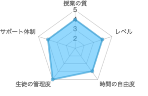 欠席時のフォローや個別対応のきめ細やかさなど面倒見の良さを5段階評価