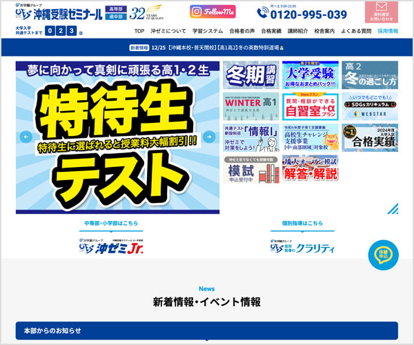 集団指導と個別指導の併用学習が可能な沖縄受験ゼミナール。オリジナルカリキュラムを使い、詰め込み式の学習ではなく思考力と洞察力を養い、応用問題にも対応できる学力が身に付く指導が行われます。