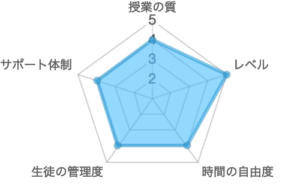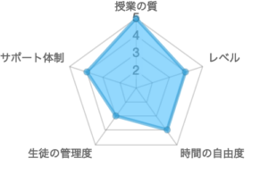 欠席時のフォローや個別対応のきめ細やかさなど面倒見の良さを5段階評価
