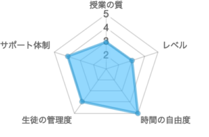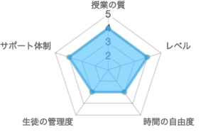 - 欠席時のフォローや個別対応のきめ細やかさなど面倒見の良さを5段階評価